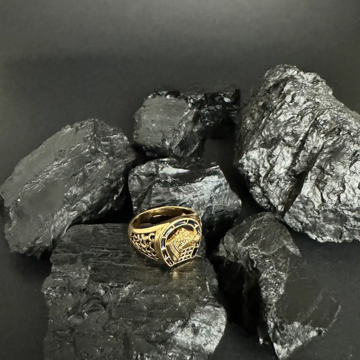 Anillo De Caballero De Caballo Con Piedras Oscuras