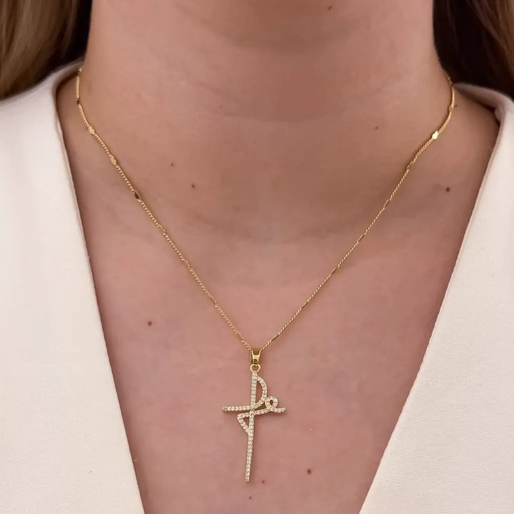 Cadena De Dama De Tejido Cubana Con Corazones De 50cm-1mm De Grosor Con Dije De Cruz Fe Cristal
