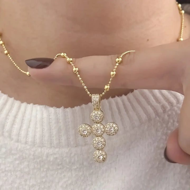 Cadena De Dama De Tejido Militar Con Balines De 50cm-3mm De Grosor Con Dije De Cruz Cristal